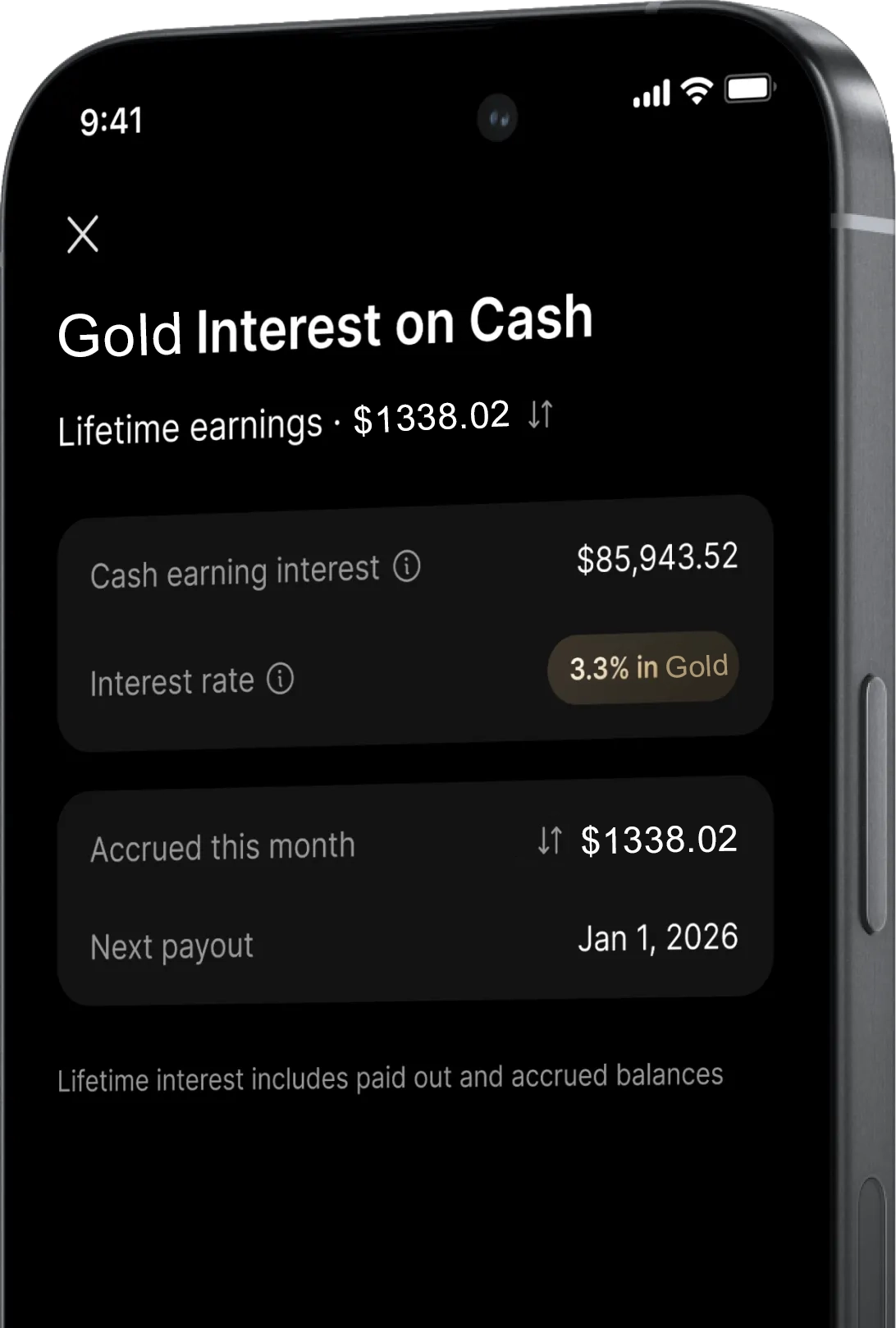 现金赚取 3.3% 利息。以黄金支付。